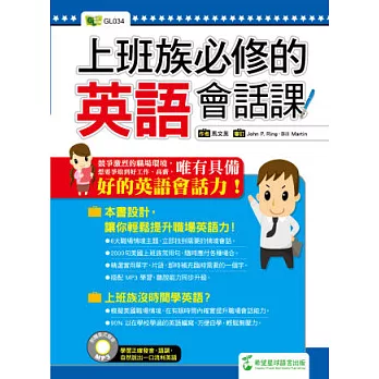 品質有保障,在博客來買 好書推薦。上班族必修的英語會話課(1書+1MP3) 也不會買貴了!